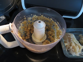 Faço uma pasta com 35gr. de nozes, 35 grs. de manteiga, 35grs de pão, 35grs. de queijo parmesão e raspas de um limão.