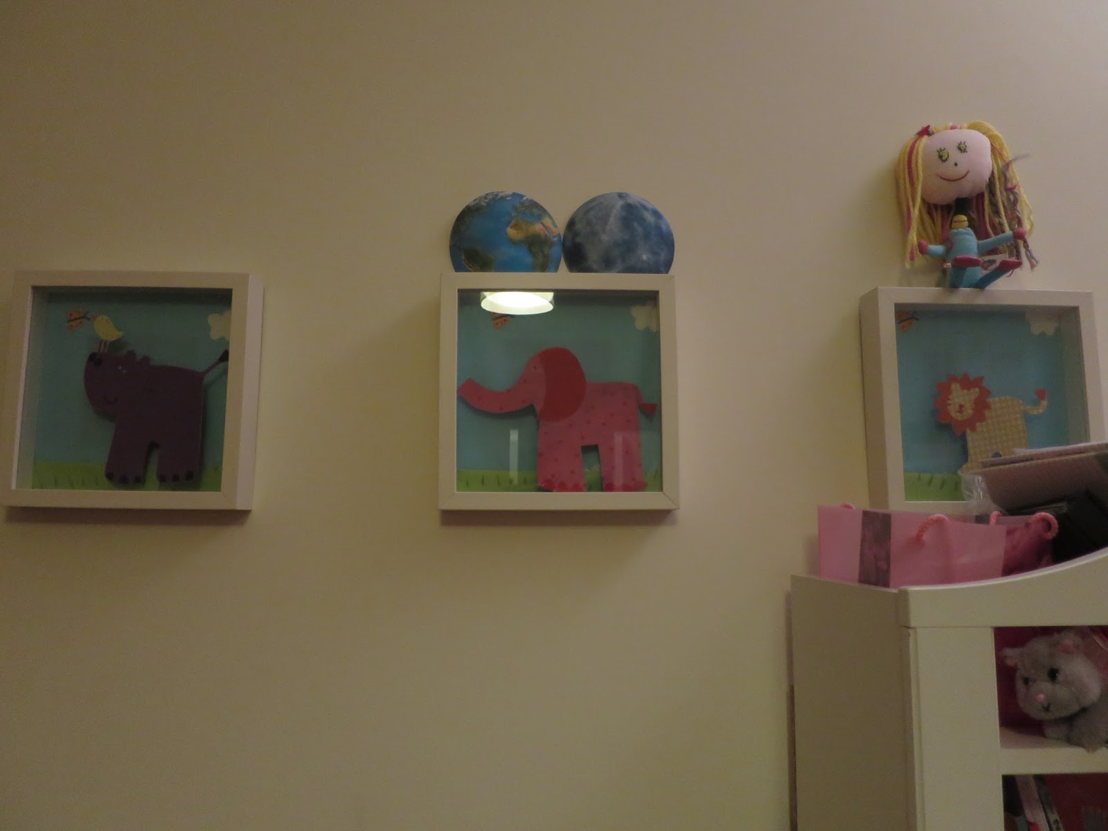 Depois, na segunda fase, fiz uma decoração unisex, com animais e os quadrinhos ficaram assim: