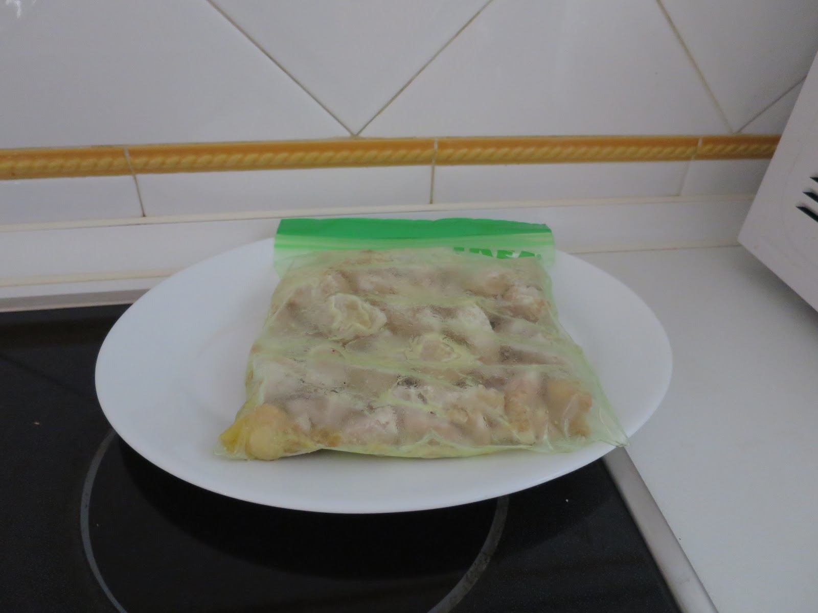 Com o frango é o mesmo esquema, faço três doses,deixo semi-pronto e depois é descongelar e usar...
