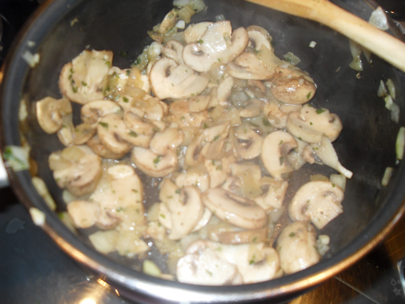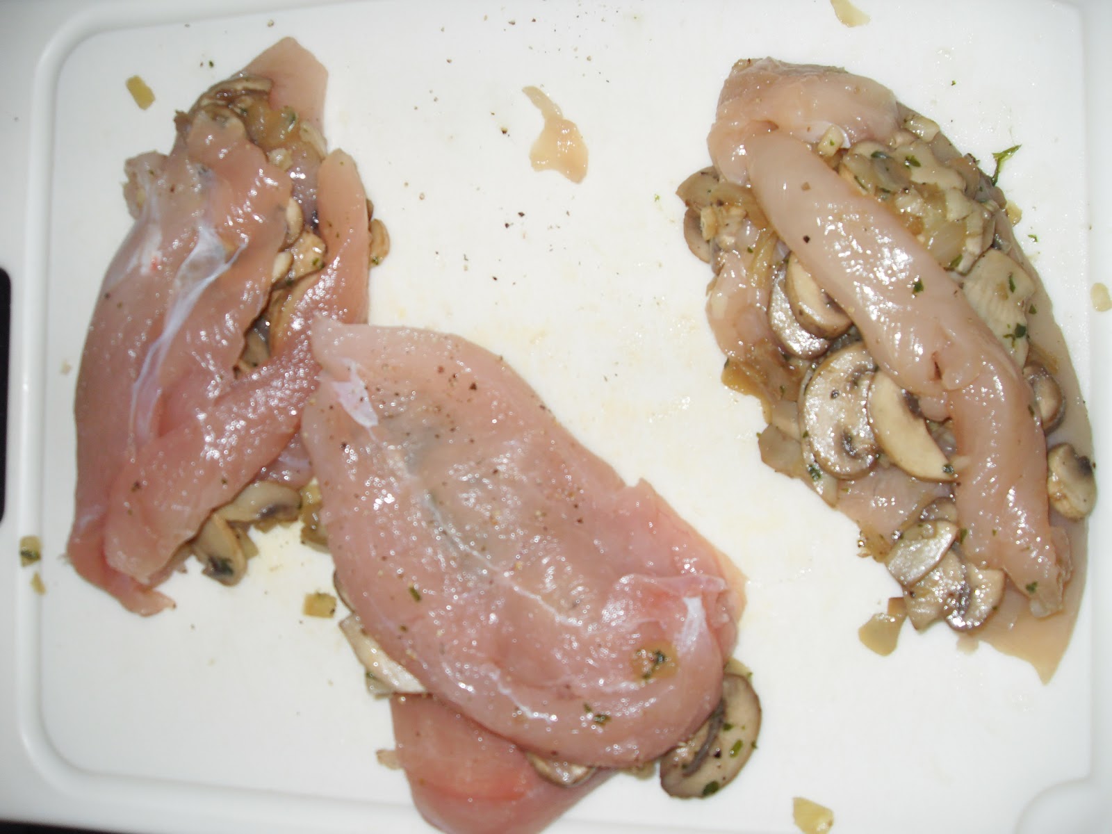 É que eu não gosto de champignons e substituí por tomates secos e nózinhos de mozzarella fatiados no recheio. Ah, e temperei com orégano, porque combina mais com os tomates secos. O pessoal daqui de casa aprovou, pois ficou uma delícia mesmo!