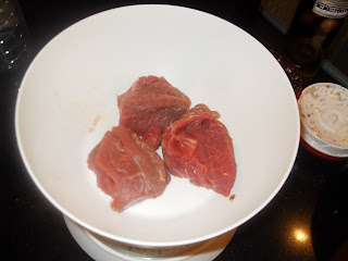 | Bife com os cogumelos, pronto para ir ao forno! |