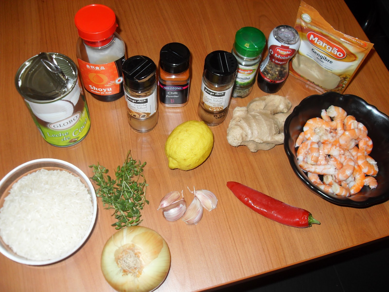 Vou começar explicando como fazer os camarões, assim, separe o leite de côco, o caldo de frango e o arroz para daqui a pouco, que são só para o arroz, ok? Combinado?