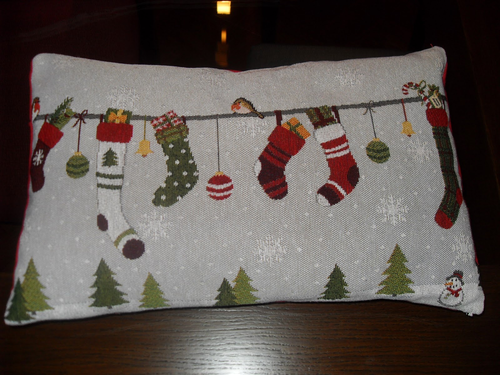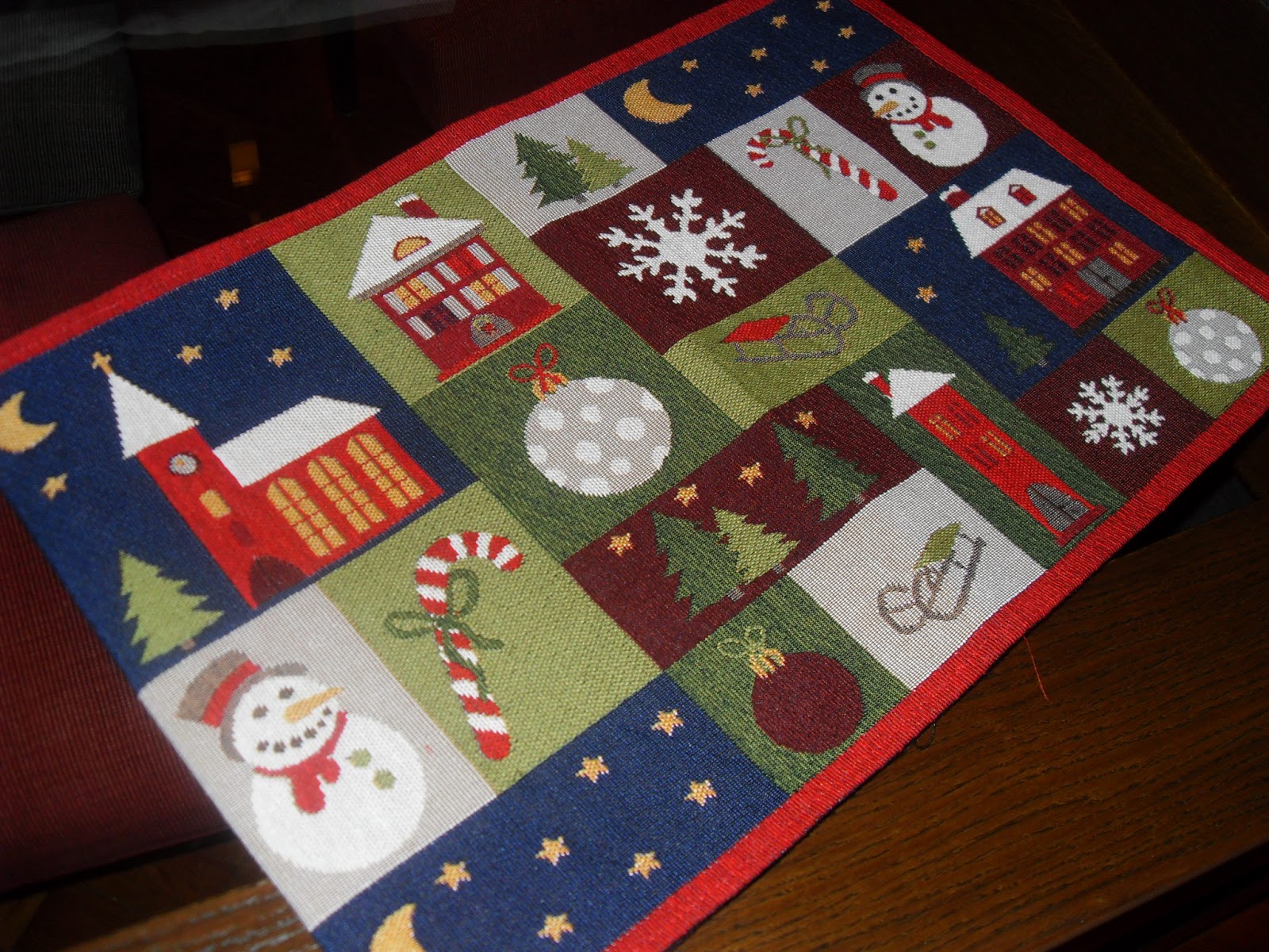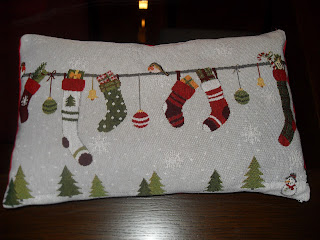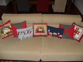 Comprei 4 jogos de individuais , jogo americano, e os estou transformando em almofadas natalinas...