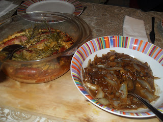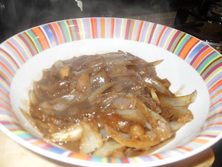 E pronto, servir com as cebolas... rápido, prático, barato e delicioso...